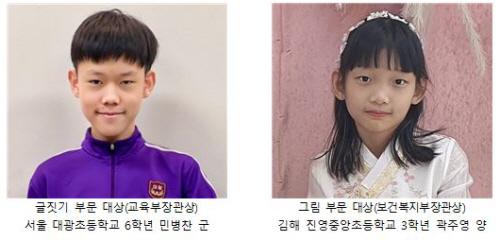Àº»óÀº ±ÛÁþ±â ºÎ¹®¿¡ Àü³² ¿µ±¤±º È«³óÃʵîÇб³ 2Çгâ À¯¼öÈ£ ¾î¸°ÀÌ µî 5¸í, ±×¸² ºÎ¹®¿¡ ´ë±¸ ¿ù¾ÏÃʵîÇб³ 2Çгâ ÀÌÁöÈ£ ¾î¸°ÀÌ µî 5¸íÀÌ ¼±Á¤µÆÀ¸¸ç, À̿ܿ¡µµ µ¿»ó 24¸í(ºÎ¹®º° 12¸í), °¡ÀÛ 40¸í(ºÎ¹®º° 20¸í), Àå·Á»ó 100¸í(ºÎ¹®º° 50¸í), ÀÔ¼± 320¸í(ºÎ¹®º° 160¸í)ÀÌ °¢°¢ »ÌÇû´Ù.