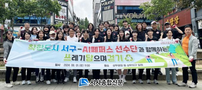 ¡®¾²´ã°È±â¡¯´Â Ç÷αëÀÇ ¿ì¸®¸»·Î ¾²·¹±â¸¦ ´ãÀ¸¸ç °È´Â ½Çõ Ȱµ¿ÀÌ´Ù. ƯÈ÷ °Ç°°ú ȯ°æÀ» µ¿½Ã¿¡ ì±æ ¼ö ÀÖ¾î ½Ã¹Îµé¿¡°Ô Å« Àαâ´Ù. À̳¯ Çà»ç´Â AIÆäÆÛ½º ¼±¼ö´Ü°ú ¼±¸ ¹è±¸µ¿È£È¸¿ø, ¼±¸Ã» Á÷¿ø µî 70¿© ¸íÀÌ Âü¿©ÇßÀ¸¸ç ¡®ÂøÇѵµ½Ã ¼±¸¡¯°¡Ä¡ ½ÇÇöÀÇ ÀÇÁö¸¦ ÇÔ²² ´ÙÁ³´Ù.