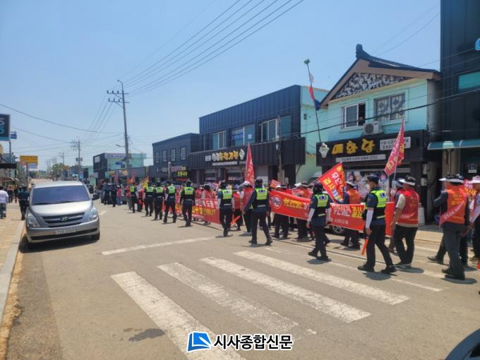 [½Ã»çÁ¾ÇսŹ® = ¿À½ÂÅà ±âÀÚ] Áö³ 3ÀÏ Çö°æ¸é Áö¿ª´ëÃ¥À§¿øÈ¸ ¹× »çȸ´Üü 100¿© ¸íÀÌ ¹«¾È³óÇù Çö°æÁöÁ¡ ¾Õ¿¡¼ ±¤ÁÖ½ÃÀÇ È«º¸ Ä·ÆäÀο¡ ¹Ý¹ßÇØ ±¤ÁÖ ±º °øÇ× ¹«¾È ÀÌÀü ¹Ý´ë¸¦ À§ÇÑ Áýȸ¸¦ °³ÃÖÇß´Ù.