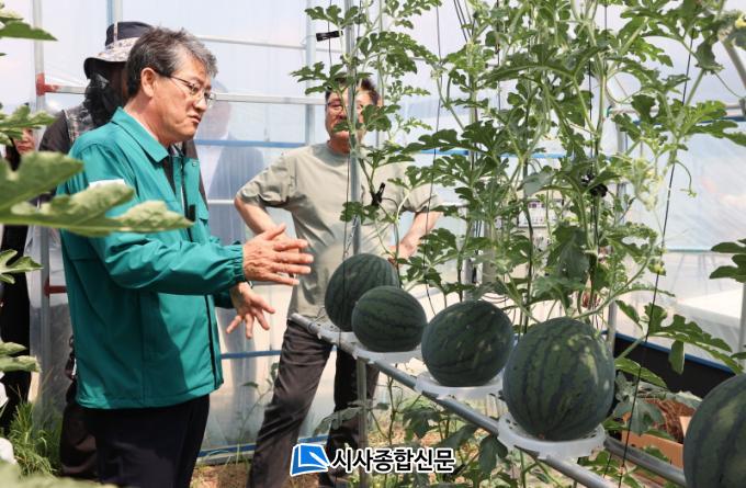 ±è¼øÈ£ ±º¼ö´Â Áö³ 3ÀÏ ¿µ³ó 2³â Â÷ÀΠû³â ³ó¾÷ÀÎ ³óÀåÀ» µÑ·¯º¸°í, ¼ö¹ÚÀÌ °í¼Òµæ ¹Ì·¡ÀÛ¹°·Î ´õ¿í ¼ºÀåÇÒ ¼ö ÀÖµµ·Ï ¼öÁ÷ Àç¹è ´ÜÁö¸¦ Àû±ØÀûÀ¸·Î È®´ëÇØ ³ª°¡°Ú´Ù°í ¹àÇû´Ù.