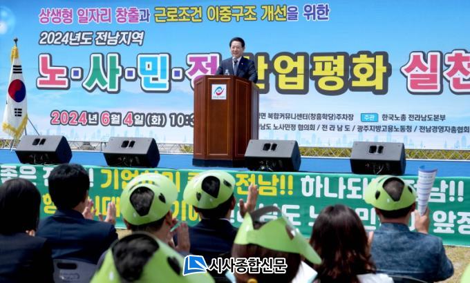 Àü³²µµ¿Í ±¤ÁÖÁö¹æ°í¿ë³ëµ¿Ã»Àº ³ëµ¿½ÃÀå ÀÌÁß±¸Á¶ °³¼±À» Áö¿øÇØ ÆòµîÇÑ ±âȸ ¼Ó¿¡¼ Àü³² ÁÖµµÇü ÀÏÀÚ¸® âÃâ, »ó»ý¹ßÀü Áö¿øÃ¼°è ±¸Ãà, »ê¾÷ÀçÇØ ¿¹¹æ µîÀ¸·Î ÇູÇÏ°í ¾ÈÀüÇÑ ÀÏÅ͸¦ Á¶¼ºÇÒ °ÍÀ» ¼±¾ðÇß´Ù.