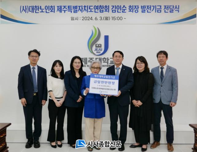 [½Ã»çÁ¾ÇսŹ® = °í¼º¹Î ±âÀÚ] (»ç)´ëÇѳëÀÎȸ Á¦ÁÖÆ¯º°ÀÚÄ¡µµ ¿¬ÇÕȸ ±èÀμø ȸÀåÀº Áö³ 3ÀÏ Á¦ÁÖ´ëÇб³(ÃÑÀå ±èÀÏȯ)¸¦ ¹æ¹®ÇØ °£È£´ëÇÐ ÀåÇбÝÀ¸·Î 1õ¸¸¿øÀ» Àü´ÞÇß´Ù.