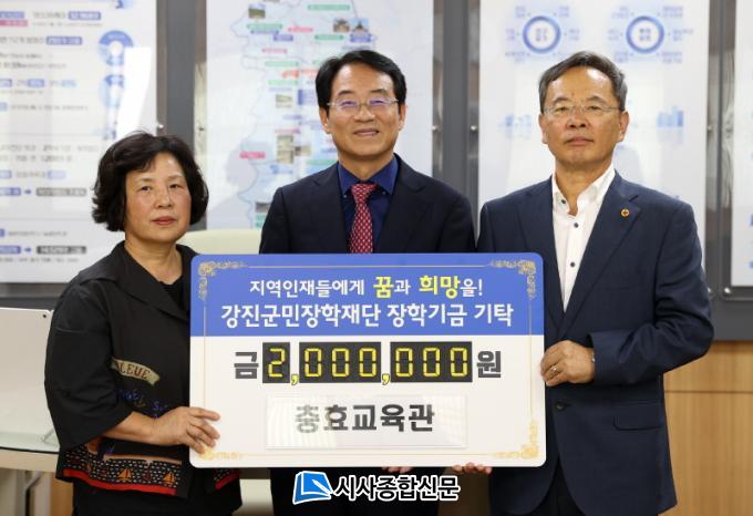 | Áö³ 6¿ù 3ÀÏ, ÃæÈ¿±³À°°ü ¾ÈÁÖÀÎ À̱ÝÁÖ ¾¾¿Í °üÀå ¹®´ö±Ù, ÅðÁ÷ °ø¹«¿ø À±¿µ°ü ¾¾°¡ ÀåÇÐ±Ý Àü´Þ½ÄÀ» °¡Á³´Ù. |