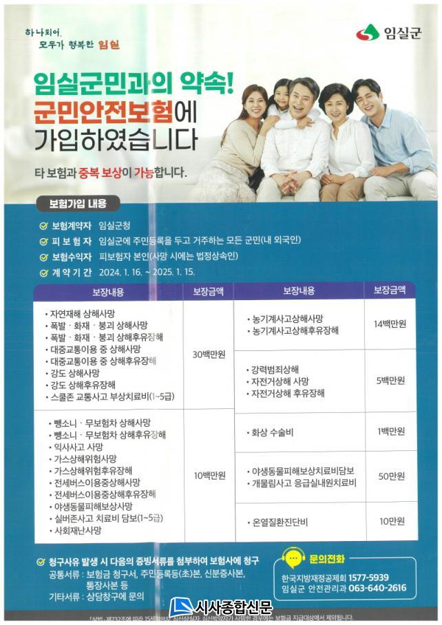 ÀӽDZºÀº ±º¹Î¾ÈÀüº¸ÇèÀÇ º¸Àå Ç׸ñÀ» Ãß°¡ÇÏ°í ±âÁ¸ º¸Àå ±Ý¾×À» È®´ëÇÏ¿© 2024³â 1¿ù 16ÀϺÎÅÍ 2025³â 1¿ù 15ÀϱîÁö ±º¹Î¾ÈÀüº¸ÇèÀ» ½Ç½ÃÇϰí ÀÖ´Ù.