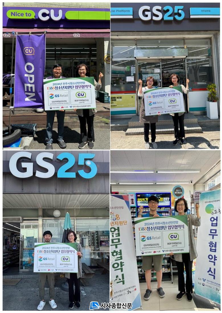 ÀüÁÖ½Ãû¼Ò³â»ó´ãº¹Áö¼¾ÅÍ(¼¾ÅÍÀå Á¤Çý¼±)´Â 13ÀÏ GS25 ÀüÁÖÁ¦1°ø´ÜÁ¡(Á¡ÁÖ ÁÖ´ëÈÆ)°ú GS25 ÀüÁÖÈ£¼º¿ì¾ÆÁ¡(Á¡ÁÖ Á¤Áø¿ì), GS25 ÀüÁÖ»ïõÁ¡(Á¡ÁÖ ¼Û´Ù¿ø), CU ±Ý¾ÏÆÄÅ©Á¡(Á¡ÁÖ ÀåÀç¹®) µî 4°³ ÆíÀÇÁ¡°ú ¡®À§±âû¼Ò³â Áö¿øÀ» À§ÇÑ 1388û¼Ò³âÁö¿ø´Ü °¡ÀÔ ¹× ¾÷¹«Çù¾à¡¯À» ü°áÇß´Ù.