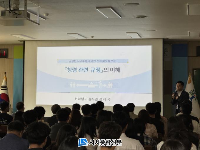 À̹ø ±³À°Àº À̱͵¿ ±º¼ö±ÇÇÑ´ëÇàÀ» ºñ·ÔÇÏ¿© ºÎ¼Àåµé°ú ½ÂÁøÀÚ, ½Å±ÔÀÚ¸¦ Áß½ÉÀ¸·Î 100¿© ¸íÀÇ Á÷¿øÀÌ Âü¼®ÇÑ °¡¿îµ¥ ÁøÇàµÇ¾ú´Ù. ±³À°ÀÇ Àü¹®¼º°ú ±íÀ̸¦ ´õÇϱâ À§ÇØ Àü³²µµÃ» ±è¼¼±¹ °¨»ç°üÀ» °»ç·Î ÃʺùÇϰí, ¡®Ã»·Å °ü·Ã ±ÔÁ¤ÀÇ ÀÌÇØ¡¯¶ó´Â ÁÖÁ¦·Î ûʱÝÁö¹ý, ÀÌÇØÃæµ¹¹æÁö¹ý, °ø¹«¿øÇൿ°·É µî û·Å °ü·Ã ¹ý·É ÁÖ¿ä³»¿ë ¼³¸í µî°ú ÇÔ²² »ç·Ê Á᫐ À§ÁÖ·Î ±³À°À» ½Ç½ÃÇÏ¿´´Ù.