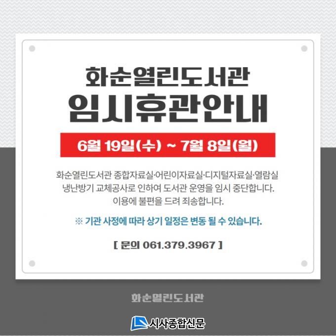 | ȼø¿¸°µµ¼°ü, ³Ã³¹æ±â ±³Ã¼ °ø»ç ½ÃÇà 6¿ù 19ÀϺÎÅÍ 7¿ù 8ÀϱîÁö 20Àϰ£ |