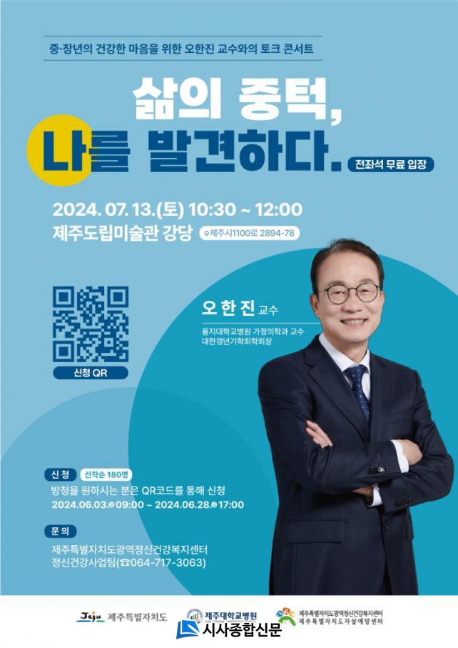 [½Ã»çÁ¾ÇսŹ® = °í¼º¹Î ±âÀÚ] Á¦ÁÖÆ¯º°ÀÚÄ¡µµ±¤¿ªÁ¤½Å°Ç°º¹Áö¼¾ÅÍ(¼¾ÅÍÀå ±è¹®µÎ, ÀÌÇÏ ±¤¿ªÁ¤½Å°Ç°º¹Áö¼¾ÅÍ)´Â ¿À´Â 07¿ù 13ÀÏ ¿ÀÀü 10½Ã 30ºÐ Á¦ÁÖµµ¸³¹Ì¼ú°ü(Á¦ÁÖ½Ã1100·Î 2894-78)¿¡¼ ÁߤýÀå³âÀÇ °Ç°ÇÑ ¸¶À½À» À§ÇÑ ¿ÀÇÑÁø ±³¼ö¿ÍÀÇ ÅäÅ©ÄܼƮ ¡®»îÀÇ ÁßÅÎ, ³ª¸¦ ¹ß°ßÇÏ´Ù¡¯¸¦ °³ÃÖÇÑ´Ù.