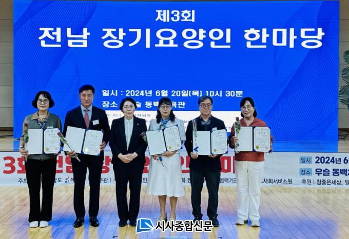 µµÀü °ñµçº§ µî ´Ù¾çÇÑ °ÔÀÓ°ú Àå±âÀÚ¶ûÀ¸·Î ±¸¼ºÇØ Á¾»çÀÚ °£ ¼ÒÅëÀÇ ½Ã°£À» °¡Á³´Ù. ¶Ç Àå±â¿ä¾çº¸ÇèÁ¦µµ¿¡ ±â¿©ÇÑ °ø·Î·Î ¸ñÆ÷»ç¶ûÀ¸·Î³ëÀÎÀü¹®¿ä¾ç¿ø ¿ä¾çº¸È£»ç µî 6¸í¿¡°Ô Àü³²µµÁö»ç»óÀ» ¼ö¿©Çß´Ù. Çà»ç¿¡ Âü¿©ÇÑ ÇÑ ½Ã¼³ »çȸº¹Áö»ç´Â ¡°°¢ ½Ã¼³ Á÷¿øµé°ú ÇÔ²² ¾î¿ï·Á ¼ÒÅëÇÏ¸ç ½ºÆ®·¹½º¸¦ ÇØ¼ÒÇÏ´Â ±âȸ°¡ µÆ´Ù¡±°í ¼Ò°¨À» ¹àÇû´Ù.