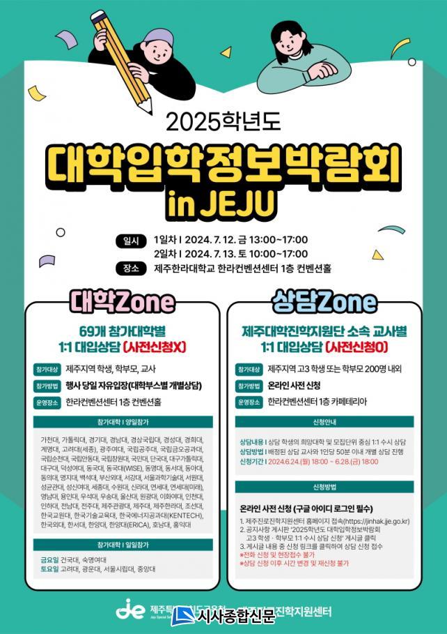 | Á¦ÁÖµµ±³À°Ã», 2025Çг⵵ ´ëÇÐÀÔÇÐÁ¤º¸¹Ú¶÷ȸ °³ÃÖ ´ëÇк° ¸ÂÃã »ó´ã, Á¦ÁÖ¿¡¼ ÀÚÀ¯·Ó°Ô Âü¿©Çϼ¼¿ä! |