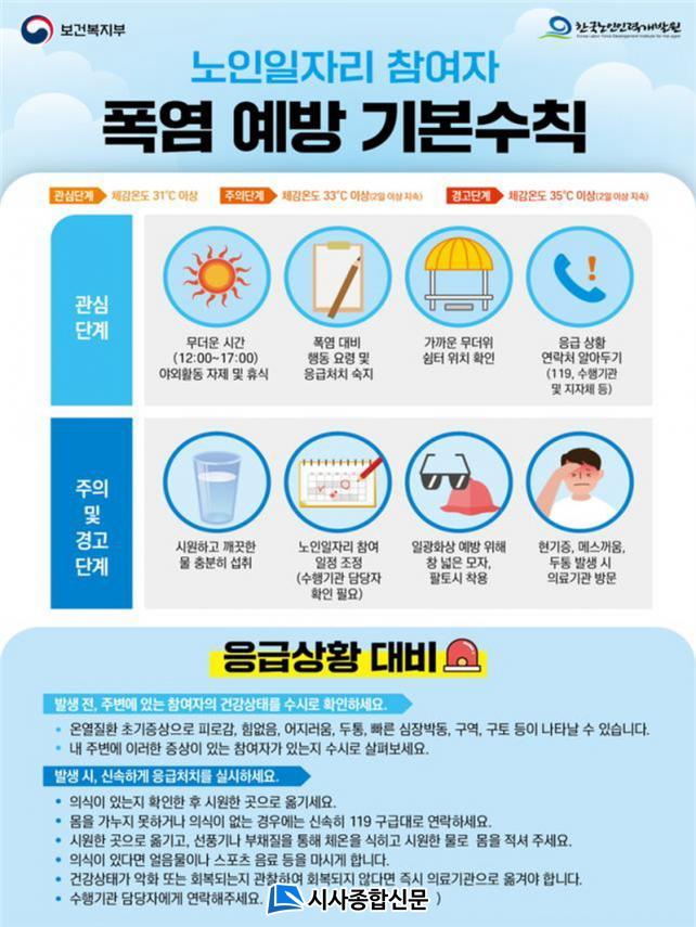 ¹«´õ¿î ³·½Ã°£´ë(12:00 ~ 17:00)¿¡ ½Ç¿ÜȰµ¿ÀÌ ÀÌ·ç¾îÁö´Â ¾÷Á¾ÀÇ »ç¾÷´ÜÀº Ȱµ¿½Ã°£À» ¿ÀÀü ½Ã°£´ë·Î Á¶Á¤Çϰí, Æø¿° ÁÖÀǺ¸(ÀÏ ÃÖ°íü°¨¿Âµµ 33¡É ÀÌ»ó) ¶Ç´Â Æø¿°°æº¸(ÀÏ ÃÖ°íü°¨¿Âµµ 35¡É ÀÌ»ó)°¡ ¹ß·ÉµÇ´Â µî ¾î¸£½ÅÀÇ È°µ¿ÀÌ ¾î·Æ´Ù°í ÆÇ´ÜµÇ´Â °æ¿ì, ź·ÂÀûÀ¸·Î ½Ç¿ÜȰµ¿À» Áß´ÜÇÏ°í ½Ç³» ±³À° µîÀÇ È°µ¿À¸·Î ´ëü ¿î¿µÇØ ³ª°£´Ù.