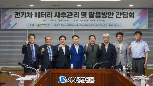 ÀüºÏƯº°ÀÚÄ¡µµÀÇȸ ź¼ÒÁ߸³Æ¯º°À§¿øÈ¸ À§¿øÀå ÇÑÁ¤¼ö ÀÇ¿ø(´õºÒ¾î¹ÎÁÖ´ç, ÀÍ»ê½Ã Á¦4¼±°Å±¸)Àº ¡¸Àü±âÂ÷ ¹èÅ͸® »çÈİü¸® ¹× Ȱ¿ë¹æ¾È °£´ãȸ¡¹¸¦ Áö³ 20ÀÏ µµÀÇȸ¿¡¼ »ç´Ü¹ýÀÎ Çѱ¹Àü±âÂ÷¹èÅ͸®Çùȸ¿Í °øµ¿ ÁÖ°üÇß´Ù.
