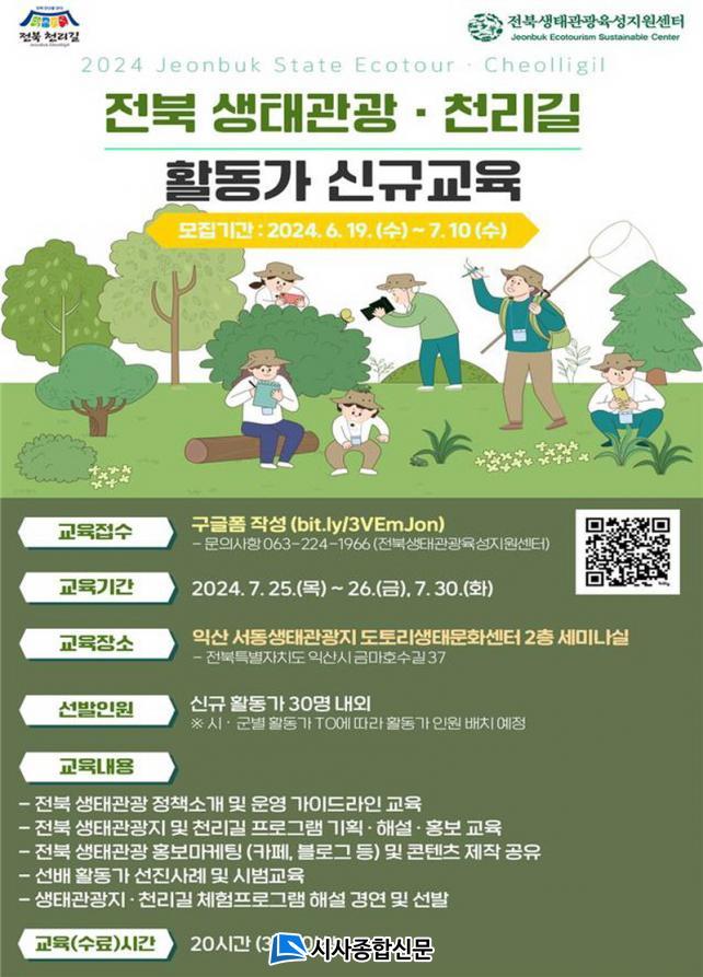 À̹ø »ýŰü±¤¡¤Ãµ¸®±æ ÇÁ·Î±×·¥ ±âȹ¡¤Çؼ³¡¤È«º¸ À̷б³À°°ú ÇöÀå ÇØ¼³»ç ±³À°, ÇØ¼³ ½Ã¿¬ µî ÃÑ 20½Ã°£ÀÇ ±³À°À» À̼öÇÏ¸é »ýŰü±¤È°µ¿°¡·Î¼ Ȱµ¿ÇÒ ¼ö ÀÖ°Ô µÈ´Ù. ÀÚ¿¬È¯°æ°ú »ýÅÂÀÚ¿ø¿¡ °ü½ÉÀÌ ¸¹Àº »ç¶÷À̶ó¸é ´©±¸³ª 7¿ù 10ÀϱîÁö ÀüºÏ»ýŰü±¤À°¼ºÁö¿ø¼¾ÅÍ È¨ÆäÀÌÁö(www.jb-ecotour.org)¿¡¼ ½ÅûÇÒ ¼ö ÀÖ´Ù.