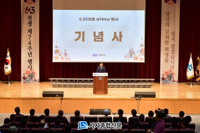 À̹ø Çà»ç´Â 6․25ÀüÀïÀÇ ¿ª»çÀû ÀÇÀǸ¦ µÇ»õ±â°í ±¹°¡¸¦ À§ÇØ °øÇåÇϰí Èñ»ýÇϽŠÂüÀüÀ¯°øÀÚ¿¡ ´ëÇÑ °¨»çÀÇ ¸¶À½À» ÀüÇϱâ À§ÇÔÀ¸·Î Á¤±â¸í ¿©¼ö½ÃÀå, ½ÃÀÇȸ ÀÇÀå, ±â°ü´ÜüÀå, µµ‧½ÃÀÇ¿ø, º¸ÈÆ‧¾Èº¸´ÜüÀå µî 200¿© ¸íÀÌ Âü¼®Çß´Ù.