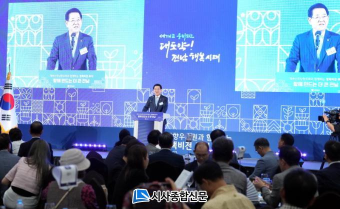 Á¤Ã¥ºñÀü Åõ¾î´Â Àü³²µµ°¡ ¹Î¼± 8±â ¹ÝȯÁ¡À» ¸Â¾Æ ¸Å³â ½Ã±ºÀ» ¹æ¹®ÇØ µµÁ¤ ¼º°ú¿Í ºñÀüÀ» µµ¹Î¿¡°Ô º¸°íÇϰí ÇöÀå ¾Ö·Î»çÇ×À» ûÃëÇÏ´ø ¡®µµ¹Î°úÀÇ ´ëÈ¡¯¸¦ »õ·Ó°Ô È®´ë¡¤°³ÆíÇÑ °ÍÀ¸·Î, ¡®ÇÔ²² ¸¸µå´Â ´õ Å« Àü³²¡¯À̶ó´Â ½½·Î°ÇÀ¸·Î ÁøÇà ÁßÀÌ´Ù. ¾Õ¼ Áö³ 14ÀÏ¿¡´Â ¼¿ï¿¡¼ ±¤ÁÖÀü³²½Ãµµ¹Îȸ Çâ¿ì 300¿© ¸í°ú µµ³ó ±³·ù Ȱ¼ºÈ »ç¾÷, ³óÃÌ Àα¸ °í·ÉÈ ÇØ¼Ò ¹æ¾È µî ´Ù¾çÇÑ Áö¿ª Çö¾È¿¡ ´ëÇØ ³íÀÇÇß´Ù.