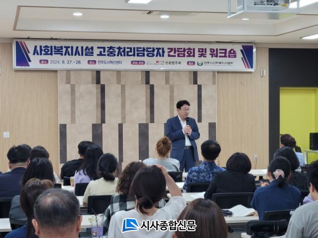 À̽ÂÀç ÀüÁֽûçȸº¹Áö»çÇùȸ ȸÀåÀº ¡°ÀüÁֽð¡ »çȸº¹Áö ÇöÀå¿¡¼ ¹ß»ýÇÏ´Â Á÷Àå ³» ±«·ÓÈû°ú Á÷Àå ³» ¼ºÈñ·Õ µî ´Ù¾çÇÑ °íÃæ ¹®Á¦¸¦ ÇØ°áÇÒ ¼ö ÀÖµµ·Ï °ü½ÉÀ» °¡Áö°í ±³À°À» ÃßÁøÇØ ÁØ °Í¿¡ ´ëÇØ °¨»çÇÏ´Ù¡±¸é¼ ¡°¾ÕÀ¸·Îµµ ÀÌ·¯ÇÑ ±³À° °úÁ¤À» Áö¼Ó ÃßÁøÇØ ÀüÁÖÁö¿ª »çȸº¹Áö½Ã¼³ ³»¿¡ ¿Ã¹Ù¸¥ °íÃæÃ³¸®ÀýÂ÷°¡ ±¸ÃàµÇ´Âµ¥ ÇùÁ¶Çϰí, ÀüÁֽð¡ Ç¥¹æÇÏ´Â ¡®¸ðµÎ°¡ Á¸Áß¹Þ´Â Àαǵµ½Ã ÀüÁÖ¡¯°¡ µÇµµ·Ï ÇÔ²² ³ë·ÂÇϰڴ١±°í ¹àÇû´Ù.