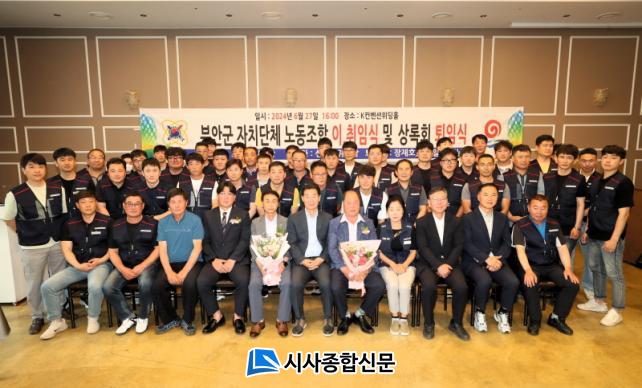 À̳¯ Çà»ç´Â ±ÇÀÍÇö ºÎ¾È±º¼ö, À̰¼¼ ±ºÀÇ¿ø, À̸»¼ø ºÎ¾È±º°ø¹«Á÷³ëÁ¶ ÁöºÎÀå°ú Á¶ÇÕ¿ø 50¿©¸íÀÌ Âü¼®ÇÑ °¡¿îµ¥, Àӱ⸦ ¸¶¹«¸®ÇÏ´Â ÀüÀÓ À§¿øÀåÀÇ ³ë°í¸¦ °Ý·ÁÇÏ°í »õ·Î ¼±ÃâµÈ Á¦4±â ½ÅÀÓ À§¿øÀå¿¡ ´ëÇÑ ÃàÇÏ ¹× Á¤³âÅðÁ÷Çϴ ȯ°æ°ü¸®¿ø¿¡°Ô °¨»çÀÇ ¸¶À½À» ÀüÇϱâ À§ÇØ ¸¶·ÃµÆ´Ù.