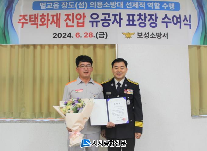 [½Ã»çÁ¾ÇսŹ® = ¿À½ÂÅà ±âÀÚ] º¸¼º¼Ò¹æ¼(¼Àå Á¤¿ëÀÎ)´Â 28ÀÏ ¹ú±³À¾ Àåµµ ÁÖÅÃÈÀç Áø¾Ð¿¡ Èû¾´ ÀÇ¿ë¼Ò¹æ´ë ÀåµµÁö´ë °È£ Ãѹ«ºÎÀå¿¡ Àü¶ó³²µµÁö»ç ǥâ ¼ö¿©½ÄÀ» °³ÃÖÇß´Ù°í ¹àÇû´Ù.