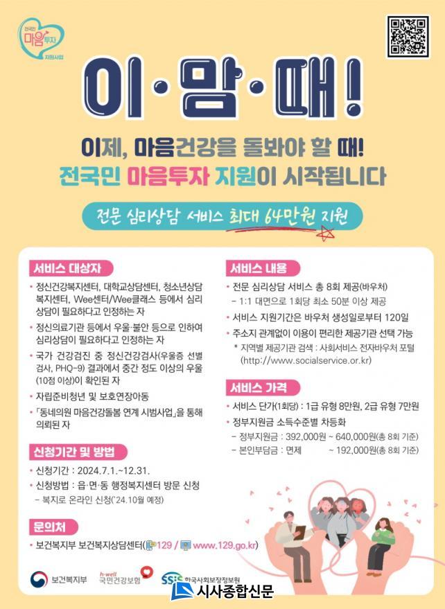 [½Ã»çÁ¾ÇսŹ® = ±è¿¬Èñ ±âÀÚ] ³²¿ø½Ãº¸°Ç¼Ò(¼ÒÀå ÇÑ¿ëÀç)¿Í Á¤½Å°Ç°º¹Áö¼¾ÅÍ¿¡¼´Â Àϻ󿡼ÀÇ ¿ì¿ï°ú ºÒ¾ÈÀÌ Á¤½ÅÁúȯÀ¸·Î À̾îÁöÁö ¾Êµµ·Ï Àü¹®°¡¿¡°Ô Àü¹®ÀûÀÎ ½É¸®»ó´ãÀ» ¹ÞÀ» ¼ö ÀÖ´Â ¡ºÀü±¹¹Î ¸¶À½ÅõÀÚ Áö¿ø»ç¾÷¡»À» 7¿ùºÎÅÍ ÃßÁøÇÑ´Ù.