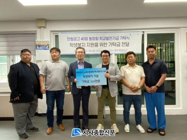 À̹ø Àü´Þ½ÄÀº ÇѸ²°ø¾÷°íµîÇб³ 40ȸ µ¿Ã¢È¸¿¡¼ Á¦ÁÖ¿µ¼ÛÇб³ÀÇ Çлýº¹Áö Áö¿øÀ» À§ÇØ 200¸¸ ¿øÀÇ Çб³¹ßÀü±â±ÝÀ» Àü´ÞÇß´Ù.