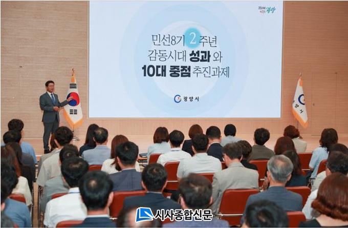 Á¤ÀÎÈ ±¤¾ç½ÃÀåÀº ¡°Áö³ 2³â°£ÀÇ ¼º°ú¸¦ ¹ÙÅÁÀ¸·Î ³²Àº ½Ã°£ °èȹÇß´ø ¸¹Àº ÀÏÀ» ÀÌ·ï³» ¡®Æò»ý »ì°í ½ÍÀº ±¤¾ç¡¯À» ¸¸µé¾î°¡°Ú´Ù¡±°í ¹àÇû´Ù. ÀÌ¾î ¡°ÀÌ´Â ½ÃÀå È¥ÀÚ¸¸À¸·Î ÇÒ ¼ö ¾ø´Â ÀÏ¡±À̶ó¸ç ¡°Á÷¿øµéÀÇ Àû±ØÀûÀÎ Âü¿©¿Í ³ë·ÂÀ¸·Î ¡®½Ã¹ÎÀÇ ÀÚ¶ûÀÌ µÇ´Â ½ÃÁ¤!¡¯, ¡®½Ã¹ÎÀÇ ÀÚ±à½ÉÀÌ µÇ´Â µµ½Ã!¡¯, ¡®¼¼°è ¼ÓÀÇ ÃÊÀÏ·ù µµ½Ã·Î ÈûÂ÷°Ô µµ¾àÇÏ´Â ±¤¾ç½Ã¡¯¸¦ À§ÇØ ´Ù ÇÔ²² ³ë·ÂÇÏÀÚ¡±°í °Á¶Çß´Ù.