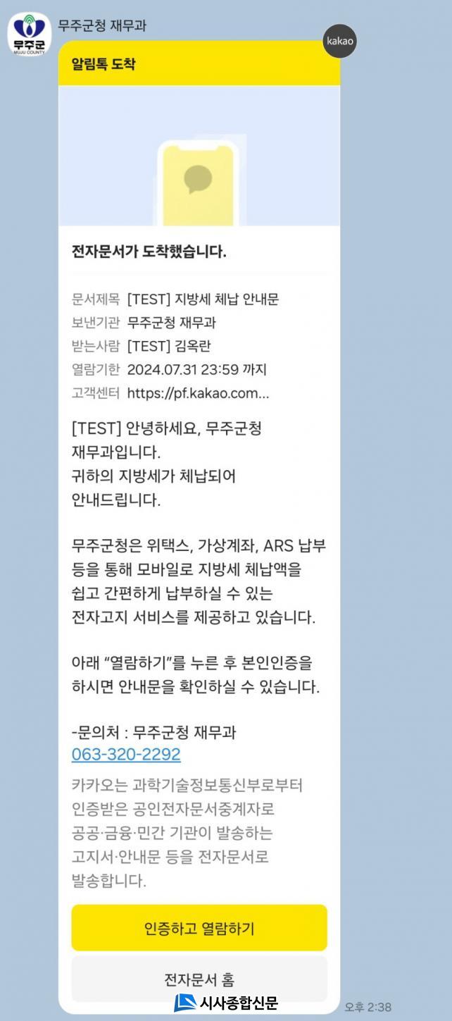 | ¹«ÁÖ±º, ü³³Áö¹æ¼¼ īī¿ÀÅå ¾Ë¸²¼ºñ½º ½ÃÇà ü³³ Áö¹æ¼¼ īī¿ÀÅåÀ¸·Î ¾Ë·Áµå·Á¿ä! |
