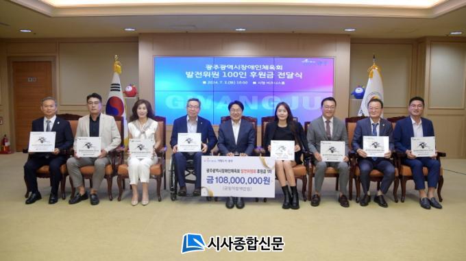 À̳¯ Çà»ç¿¡´Â ±¤ÁÖ½ÃÀå¾ÖÀÎüÀ°È¸ ȸÀåÀÎ °±âÁ¤ ½ÃÀåÀ» ºñ·ÔÇØ ÇÑ»óµæ ¼ö¼®ºÎȸÀå, ±èÇö¼º »ç¹«Ã³Àå, Á¤¼±±³ ¹ßÀüÀ§¿øÈ¸ ÃßÁø´ÜÀå°ú ÃßÁøÀ§¿øµéÀÌ Âü¼®ÇÑ °¡¿îµ¥ ÈÄ¿ø±Ý 1¾ï800¸¸¿øÀ» ±¤ÁÖ½ÃÀå¾ÖÀÎüÀ°È¸¿¡ Àü´ÞÇß´Ù.