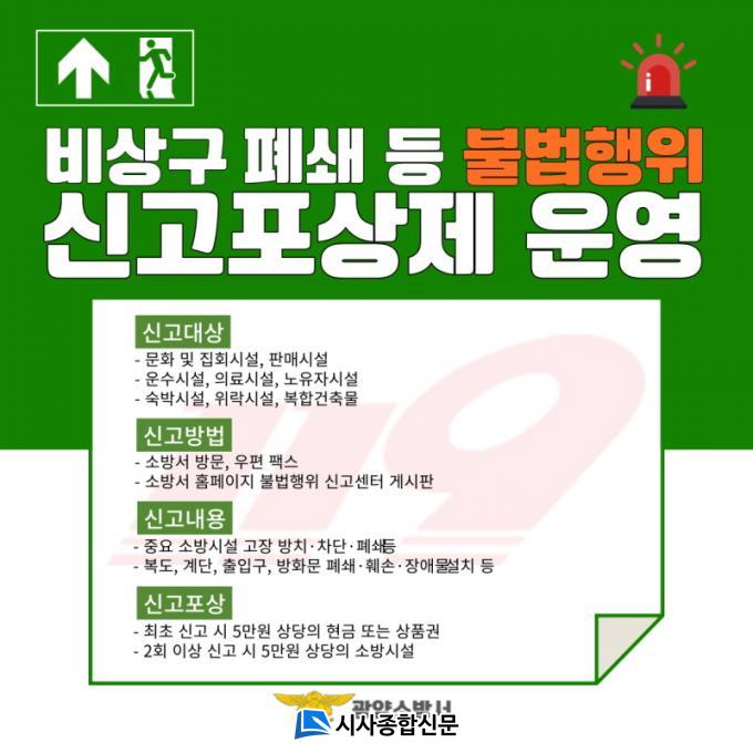[½Ã»çÁ¾ÇսŹ® = Àå¹Î±Ô ±âÀÚ] ±¤¾ç¼Ò¹æ¼(¼Àå Á¤°¿Á)´Â ƯÁ¤¼Ò¹æ´ë»ó¹° ¾ÈÀü°ü¸® °È¸¦ À§ÇØ ¡®¼Ò¹æ½Ã¼³ µî ºÒ¹ýÇàÀ§ ½Å°íÆ÷»óÁ¦¡¯¸¦ ¿¬Áß ¿î¿µÇÑ´Ù°í 2ÀÏ ¹àÇû´Ù.