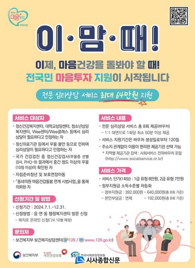 º¸°Ç¼Ò °ü°èÀÚ´Â ¡°ÀÌ »ç¾÷ÀÌ ½Ã¹ÎÀÇ ¸¶À½ °Ç°À» µ¹º¼ ¼ö ÀÖ´Â °è±â°¡ µÇ±æ ¹Ù¶õ´Ù¸ç Àü¹® ½É¸®»ó´ãÀ» ÅëÇØ ¸¹Àº ½Ã¹ÎÀÌ Á¤¼Àû ¾î·Á¿òÀ» ±Øº¹ÇÒ ¼ö ÀÖµµ·Ï ¸¹Àº °ü½É°ú Âü¿©¸¦ ºÎʵ台´Ù.¡±°í ÀüÇß´Ù.