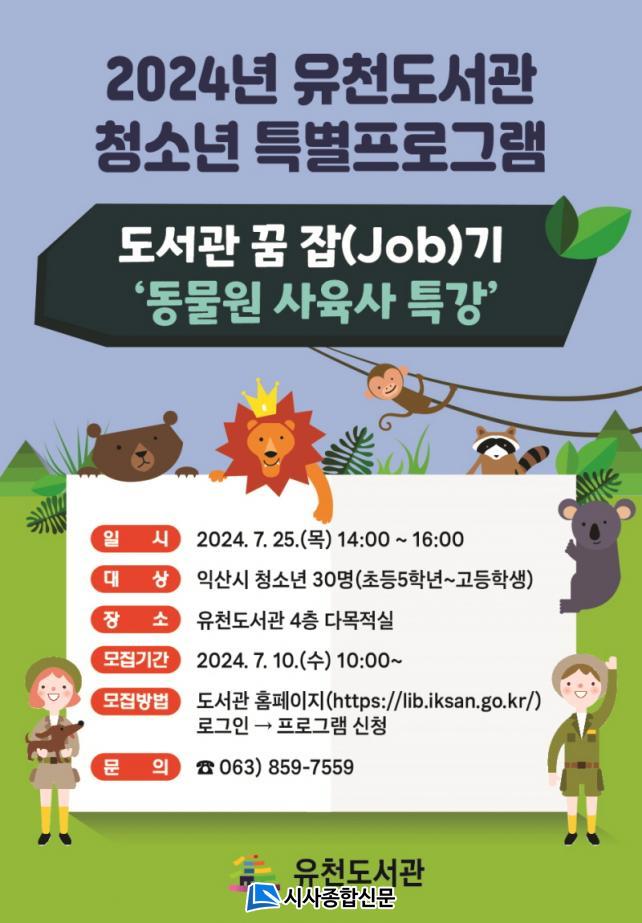 | ÀÍ»ê½Ã, û¼Ò³â Áø·ÎŽ»ö Ư° ÁøÇà À¯Ãµµµ¼°ü ¿À´Â 25ÀÏ 'µµ¼°ü ²Þ Àâ(Job)±â-µ¿¹°¿ø »çÀ°»ç Ư°' ÁøÇà |
