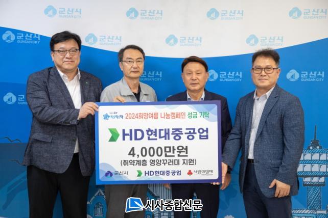 [½Ã»çÁ¾ÇսŹ® = ±è¿¬Èñ ±âÀÚ] HDÇö´ëÁß°ø¾÷(´ëÇ¥ÀÌ»ç ÀÌ»ó±Õ, ³ëÁøÀ²)ÀÌ 11ÀÏ ¹«´õÀ§¿¡ ÁöÄ£ »çȸº¹Áö½Ã¼³ÀÌ¿ëÀÚ¸¦ À§ÇØ 4,000¸¸¿ø »ó´çÀÇ ¿©¸§³ª±â ¿µ¾ç²Ù·¯¹Ì¸¦ ±º»ê½Ã¿¡ Àü´ÞÇß´Ù.