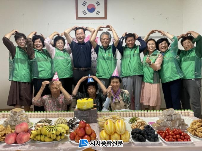 À̹ø Çà»ç¿¡´Â µµ¾Ï¸é »õ¸¶À»ºÎ³àȸ(ȸÀå Á¤Á¤¾Ö) ȸ¿øµéÀÌ Á÷Á¢ ÁغñÇÑ Á¦Ã¶ ³ª¹° ¹ÝÂù, ¶±, »ýÀÏÄÉÀÌÅ©, °úÀÏ·Î È·ÁÇÑ »ý½Å»óÀ» ¸¶·ÃÇß´Ù. °Áø±º»õ¸¶À»ÇùÀÇȸ´Â ¶ÇÇÑ ¿©¸§Àá¿ÊÀ» ¼±¹°·Î ÁغñÇØ ¾î¸£½ÅµéÀÇ °Ç°°ú Æí¾ÈÇÑ ¿©¸§³ª±â¸¦ Áö¿øÇß´Ù.