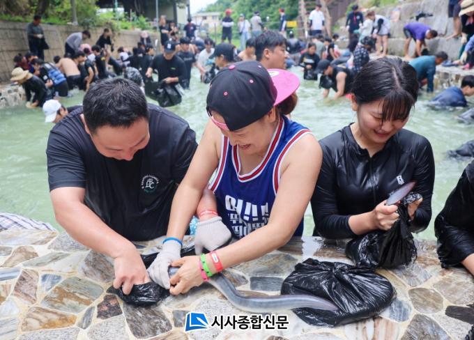 ÀÌ Àå¾îµéÀº °³Àå ÃàÇÏ ÆÛÆ÷¸Õ½ºÀÇ Çϳª·Î ¿¸° Àå¾îÀâ±â Çà»ç¿¡ ¾²¿´´Ù. °¡Á· ´ÜÀ§ °ü±¤°´ 300¿© ¸íÀº ±âÂù·£µå ¹°³îÀÌÀå¿¡ ¹æ·ùµÈ Àå¾î¸¦ Àâ±â À§ÇØ ´õÀ§µµ Àذí, ¹«¸ ±íÀÌÀÇ ¹°¼Ó¿¡¼ ºÐÁÖÈ÷ ¿òÁ÷ÀÌ¸ç ¿©¸§³¯ÀÇ Ãß¾ïÀ» ½×¾Ò´Ù.