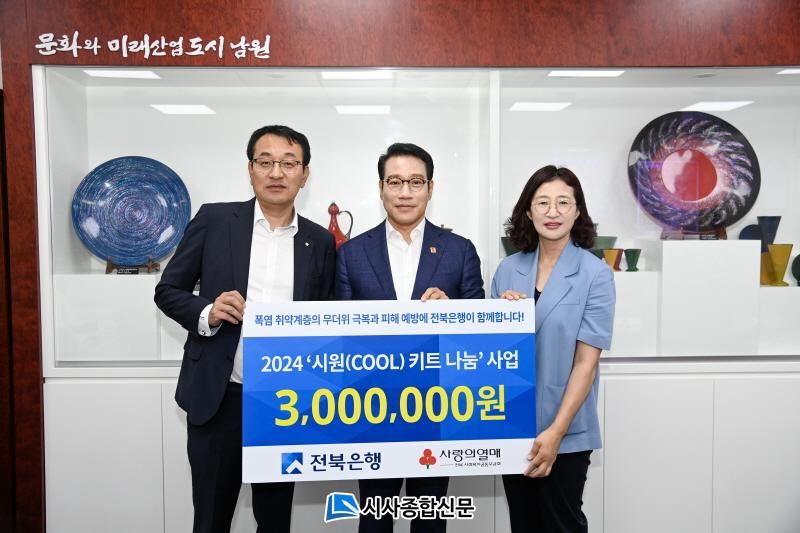 ÃÖ°æ½Ä ³²¿ø½ÃÀåÀº ¡°¹«´õÀ§¿¡ ²À ÇÊ¿äÇÑ ¹°Ç°À» ÈÄ¿øÇØÁֽŠJBÀüºÏÀºÇà ³²¿øÁöÁ¡¿¡ ´Ù½Ã Çѹø °¨»çÀÇ ¸»¾¸À» µå¸®¸ç ´Ùµé °Ç°ÇÏ°í ½Ã¿øÇÑ ¿©¸§ º¸³»½Ã±æ ¹Ù¶õ´Ù.¡±°í ÀüÇß´Ù.