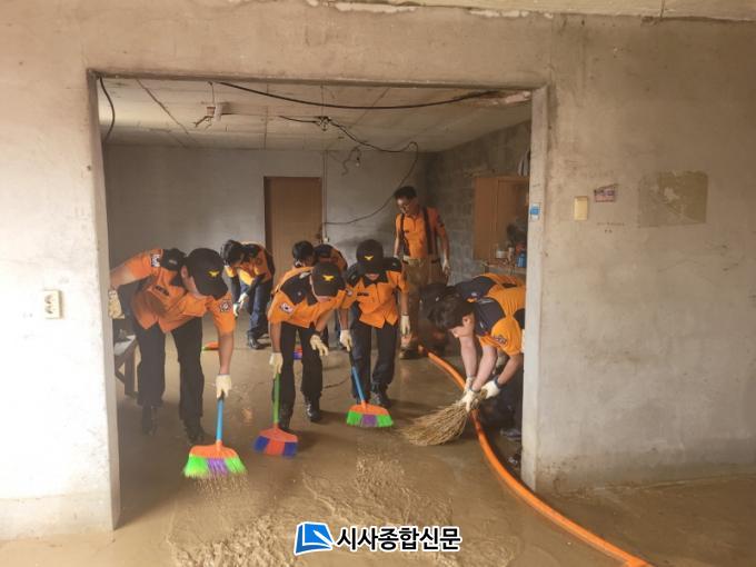 À̹ø ÇöÀåÁö¿øÀº ¼Ò¹æ¼ Á÷¿ø°ú ÀÇ¿ë¼Ò¹æ´ë µî 100¿© ¸íÀÌ Âü¿©ÇÑ °¡¿îµ¥, µµ¸ñ¸¶À» µî ħ¼ö ÇÇÇØ ÁÖÅõéÀ» ã¾Æ ¹°¿¡ Á¥Àº °¡Àçµµ±¸ Á¤¸® ¹× ½Ç³»‧¿Ü Åä»ç Á¦°Å µî Àü¹ÝÀûÀÎ ¼öÇØ º¹±¸ Ȱµ¿À» ÃßÁøÇß´Ù.