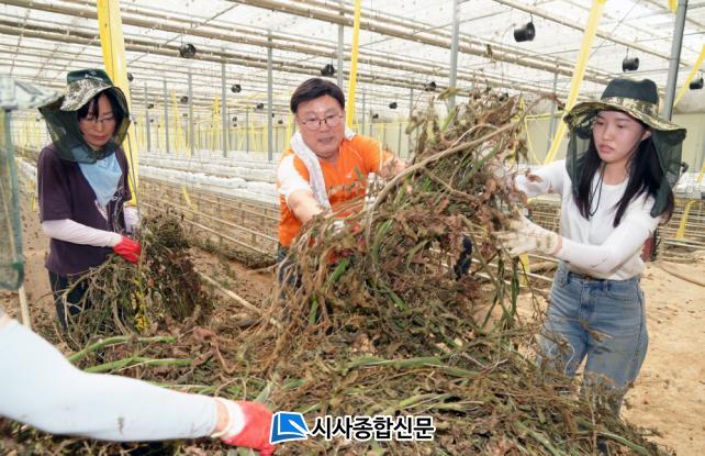 [½Ã»çÁ¾ÇսŹ® = ¿À½ÂÅà ±âÀÚ] ÀüºÏƯº°ÀÚÄ¡µµÀÇȸ ¹®½Â¿ì ÀÇÀå(±º»ê4)À» ºñ·ÔÇÑ ÀÇȸ»ç¹«Ã³ Á÷¿ø 30¿©¸íÀº ÁýÁßÈ£¿ì·Î ħ¼öÇÇÇØ¸¦ ÀÔÀº ±º»ê½Ã ÀÓÇÇ¸é ¼ÒÀç Å丶Åä ³óÀåÀ» ¹æ¹®ÇÏ¿© À§·Î¸¦ ÀüÇϰí ÇÇÇØº¹±¸¸¦ À§ÇØ ÀϼÕÀ» Áö¿øÇß´Ù.