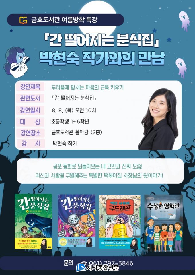 ±× Áß¡¸¹ÚÇö¼÷ ÀÛ°¡¿ÍÀÇ ¸¸³²¡¹Àº ÃʵîÇлýµé »çÀÌ¿¡¼ Àαâ ÀÖ´Â °øÆ÷¼Ò¼³ÀÎ ¡®°£ ¶³¾îÁö´Â ºÐ½ÄÁý¡¯ÀÇ ÀúÀÚ¸¦ ÃÊÃ»ÇØ °¿¬À» ÁøÇàÇÒ ¿¹Á¤ÀÌ´Ù. °¿¬¿¡¼´Â ÀÛÁß µîÀåÇÏ´Â ±Í½Å¿¡ ´ëÇÑ ¼ö¼ö²²³¢¸¦ Ç®¸ç ¾ÆÀ̵éÀÌ µÎ·Á¿òÀ̶ó´Â °¨Á¤°ú ±× °¨Á¤À» ´Ù·ç´Â ¹æ¹ý¿¡ ´ëÇØ »ý°¢ÇØ º¸´Â ½Ã°£À» °¡Áø´Ù.