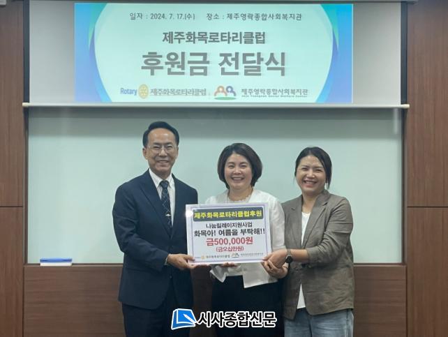 [½Ã»çÁ¾ÇսŹ® = °í¼º¹Î ±âÀÚ] Á¦ÁÖȸñ·ÎŸ¸®Å¬·´(ȸÀå ¼Ûº¹·¡)Àº Áö³ 17ÀÏ Á¦ÁÖ¿µ¶ôÁ¾ÇÕ»çȸº¹Áö°ü(°üÀå ÀÌ»ó¾ð)ÀÇ Ãë¾à°èÃþ ³ª´®¸±·¹ÀÌÁö¿ø»ç¾÷À» À§ÇØ 50¸¸¿øÀ» ÈÄ¿øÇÏ¿´´Ù.