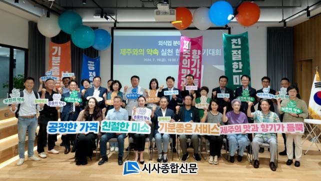 Á¦ÁÖµµ´Â 19ÀÏ ¿ÀÀü Á¦ÁÖÀ£Äļ¾ÅÍ¿¡¼ ©ÅÁ¦ÁÖÆ¯º°ÀÚÄ¡µµ°ü±¤Çùȸ, ©ÅÇѱ¹¿Ü½Ä¾÷Áß¾Óȸ Á¦ÁÖÆ¯º°ÀÚÄ¡µµÁöȸ µî ¿Ü½Ä¾÷°è ´ëÇ¥µé°ú Á¾»çÀÚµéÀÌ Âü¿©ÇÑ °¡¿îµ¥ ¡®Á¦ÁÖ¿ÍÀÇ ¾à¼Ó¡¯ ½Çõ ÇѸ¶À½ °á±â´ëȸ¸¦ °³ÃÖÇß´Ù°í ¹àÇû´Ù.