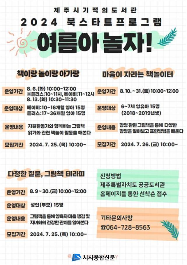 ¿À´Â 8¿ù 6ÀϺÎÅÍ 31ÀϱîÁö ¿µ¡¤À¯¾Æ ÇÁ·Î±×·¥ÀÎ ¡ã<Ã¥À̶û ³îÀ̶û ¾Æ°¡¶û(10~36°³¿ù)>, ¡ã<¸¶À½ÀÌ ÀÚ¶ó´Â Ã¥³îÀÌÅÍ(6~7¼¼)>°¡ ¿î¿µµÇ°í, ºÎ¸ð ±³À° ÇÁ·Î±×·¥À¸·Î´Â ¡ã<´ÙÁ¤ÇÑ Áú¹®, ±×¸²Ã¥ Å×¶óÇÇ>°¡ ÁøÇàµÉ ¿¹Á¤ÀÌ´Ù.