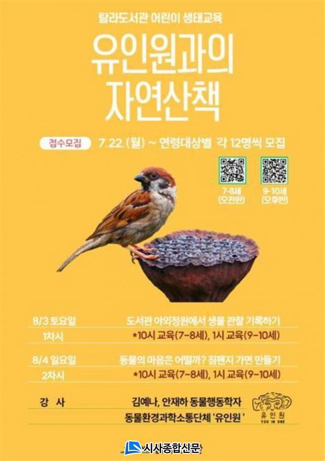 À̹ø ÇÁ·Î±×·¥¿¡¼´Â 7~8¼¼, 9~10¼¼ ¾î¸°ÀÌ Âü°¡ÀÚ¸¦ °¢ 12¸í¾¿ ¸ðÁýÇØ µµ¼°ü ¾ß¿Ü Á¤¿ø¿¡¼ »ý¹°À» °üÂûÇϰí Á÷Á¢ ±â·ÏÇϴ Ȱµ¿, ħÆÒÁö °¡¸é ¸¸µé±â üÇè µî ¿ì¸® ÁÖº¯ÀÇ ´Ù¾çÇÑ »ý¹°µé¿¡ °ü½ÉÀ» °¡Áú ¼ö Àִ Ȱµ¿À» ÇÒ ¿¹Á¤ÀÌ´Ù.