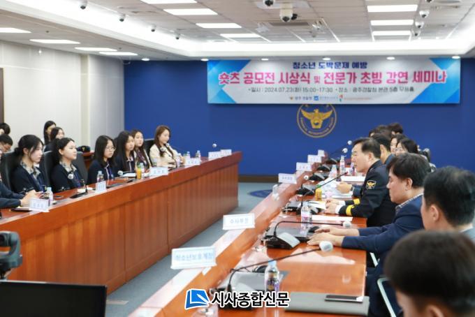 ±¤ÁÖ°æÂûûÀº ±¤ÁÖ±¤¿ª½Ã±³À°Ã», ±¤ÁÖÀü³²µµ¹Ú¹®Á¦¿¹¹æÄ¡À¯¼¾ÅÍ¿Í °øµ¿À¸·Î ¡¯24. 7. 23.(È) ±¤ÁÖ°æÂûû ¹«µîȦ¿¡¼ ¡®Ã»¼Ò³â µµ¹Ú¹®Á¦ ¿¹¹æÀ» À§ÇÑ ¿µ»ó(¡®¼ôÃ÷¡¯) °ø¸ðÀü¡¯ ½Ã»ó½Ä ¹× Àü¹®°¡ Ãʺù ¼¼¹Ì³ª¸¦ °³ÃÖÇÏ¿´´Ù.