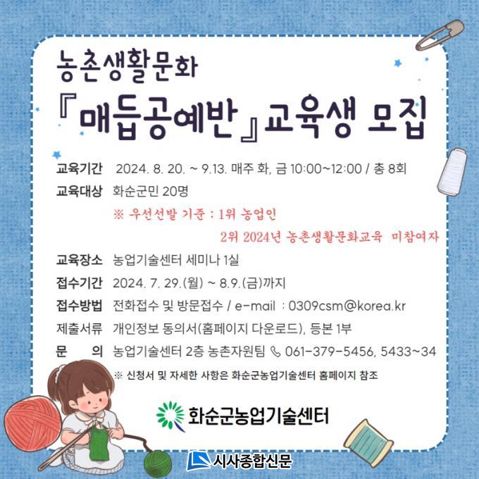 | ȼø±º, ¡®¸Åµì°ø¿¹¹Ý ±³À°¡¯ ¼ö°»ý ¸ðÁý ³ó¾÷±â¼ú¼¾ÅÍ ¸Åµì°ø¿¹ ÃÊ±Þ¹Ý 8ȸ ¿î¿µ |