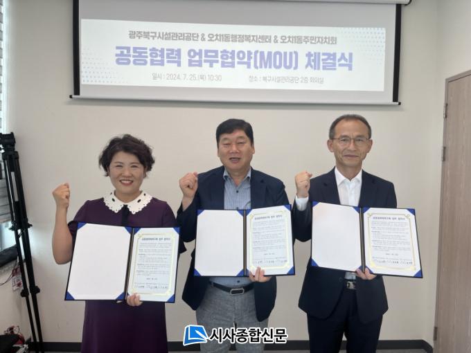 [½Ã»çÁ¾ÇսŹ® = ¿À½ÂÅà ±âÀÚ] ±¤ÁÖ±¤¿ª½ÃºÏ±¸½Ã¼³°ü¸®°ø´Ü(ÀÌÇÏ ¡®°ø´Ü¡¯)Àº 25ÀÏ Áö¼Ó°¡´ÉÇÑ Áö¿ª ÇàÁ¤º¹Áö °øµ¿Ã¼ ±¸Ãà µî ÁֹΠº¹¸® Çâ»óÀ» À§ÇØ ¿ÀÄ¡1µ¿ÇàÁ¤º¹Áö¼¾ÅÍ, ¿ÀÄ¡1µ¿ÁÖ¹ÎÀÚġȸ¿Í ¼ÕÀ» ¸ÂÀâ¾Ò´Ù.