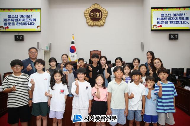 [½Ã»çÁ¾ÇսŹ® = °í¼º¹Î ±âÀÚ] Á¦ÁÖÆ¯º°ÀÚÄ¡µµÀÇȸ(ÀÇÀå ÀÌ»óºÀ)´Â 26ÀÏ ¿ÀÈÄ 3½Ã, º»È¸ÀÇÀå¿¡¼ ÀåÀüÃʵîÇб³ ¾î¸°ÀÌȸ Çлý µî 15¸íÀÌ Âü¿©ÇÑ °¡¿îµ¥ û¼Ò³â ¸ðÀÇÀÇȸ ÀÇÁ¤Ã¼ÇèÀÇ ÀåÀ» ¸¶·ÃÇÏ¿´´Ù.