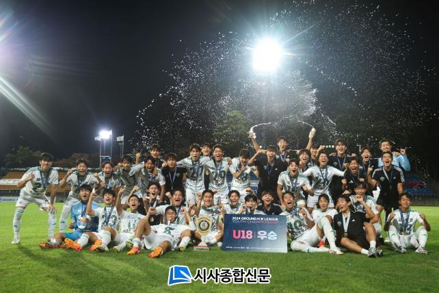 ÀüºÏÇö´ëU18 ÆÀÀÌ Áö³ 25ÀÏ(¸ñ) Ãæ³² õ¾ÈÃ౸¼¾ÅÍ ÁÖ°æ±âÀå¿¡¼ Ä¡·¯Áø ¡®2024 GROUND.N K¸®±× èÇǾð½Ê¡¯ °á½ÂÀü¿¡¼ ±èõU18 ÆÀÀ» 4´ë1·Î ¹°¸®Ä¡°í 6Àü ¹«ÆÐ·Î ¿ì½ÂÇϸç ÃÖÃÊ U18ÆÀ èÇǾð½ÊÀ» °Å¸ÓÁã¾ú´Ù.