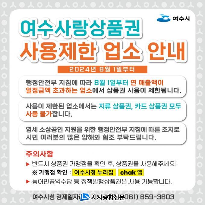 | ¿©¼ö½Ã, ¿¬¸ÅÃâ¾× 30¾ï Ãʰú °¡¸ÍÁ¡¿¡ ¡®¿©¼ö»ç¶û»óǰ±Ç »ç¿ë Á¦ÇÑ¡¯ 8¿ù 1ÀϺÎÅÍ 211°³¼Ò »óǰ±Ç »ç¿ë ºÒ°¡¡¦¡®¼Ò»ó°øÀÎ Áö¿ø ÁýÁß¡¯ |