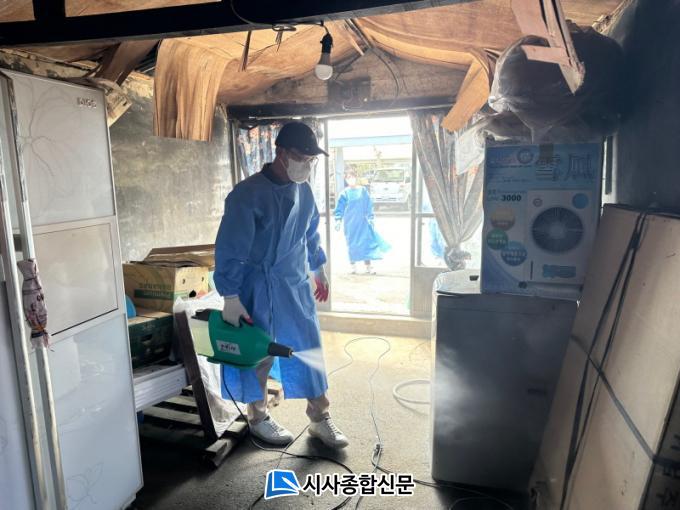 À̹ø È£¿ì·Î ħ¼öµÈ 51°¡±¸ÀÇ Áý ³»ºÎ¿Í ÁÖº¯ µî¿¡ »ì±ÕÁ¦, »ìÃæÁ¦¸¦ º´Çà ¼Òµ¶ÇÏ°í °³ÀÎÀ§»ý °ü¸®¸¦ À§ÇÑ °¨¿°º´ ¿¹¹æ ¾È³»¿Í ¼Òµ¶Á¦ µî ¿¹¹æ ¹°Ç°À» ¹èºÎÇÔÀ¸·Î½á ¼öÀμº °¨¿°º´ µî ¿©¸§Ã¶ °¨¿°º´ ¿¹¹æ¿¡ ÃÖ¼±À» ´ÙÇß´Ù.