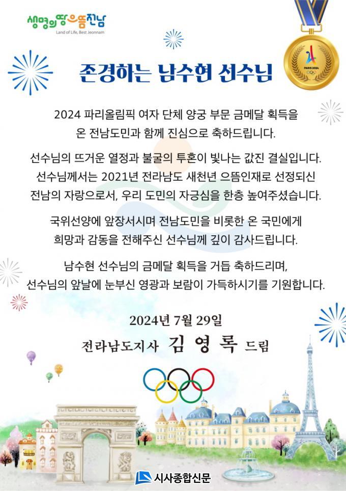 ±è¿µ·Ï Áö»ç´Â ¡°³²¼öÇö ¼±¼ö´Â 2021³â Àü¶ó³²µµ »õõ³â À¸¶äÀÎÀç·Î ¼±Á¤µÈ Àü³²ÀÇ ÀÚ¶ûÀ¸·Î¼, ¿ì¸® µµ¹ÎÀÇ ÀÚ±à½ÉÀ» ÇÑÃþ ³ô¿©Áá´Ù¡±¸ç ¡°±¹À§¼±¾ç¿¡ ¾ÕÀ弸ç Àü³²µµ¹ÎÀ» ºñ·ÔÇÑ ¿Â ±¹¹Î¿¡°Ô Èñ¸Á°ú °¨µ¿À» ÀüÇØÁØ ¼±¼ö´Ô²² ±íÀÌ °¨»çµå¸°´Ù¡±°í ¸»Çß´Ù.