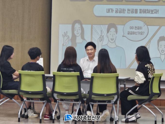 ÀÔ¼Ò ¼Â° ³¯ÀÎ 25ÀÏ ±è´ëÁß Àü³²±³À°°¨ÀÌ ¡®²Þ ½ÇÇö ÀλýÇб³ 3±â¡¯Çлý 40¿© ¸í°ú ÇÔ²² Áø·Î ¸àÅ丵À» ¿¾î ¿¶í È£ÀÀÀ» ¹Þ¾Ò´Ù. À̹ø ¸àÅ丵Àº¡®³» ÀλýÀº ³»°¡ ¼³°èÇÑ´Ù¡¯´Â ²Þ ½ÇÇö Àλý Çб³ ½½·Î°Ç¿¡ ¸ÂÃç ÁøÇàµÆÀ¸¸ç, ±è´ëÁß ±³À°°¨°ú °í±â¹Î(¿¬¼¼´ë »ý¸í°úÇбâ¼úÇкΠ2³â) ¸àÅä µî ´Ù¾çÇÑ Àü°ø ¸àÅä 9¸íÀÌ Áø·Î ºÎ½º¸¦ ¿î¿µÇϸç Èñ¸ÁÇÏ´Â ¼Ò±×·ì Çлýµé°ú ²Þ¿¡ ´ëÇÑ À̾߱⸦ ³ª´©¾ú´Ù.